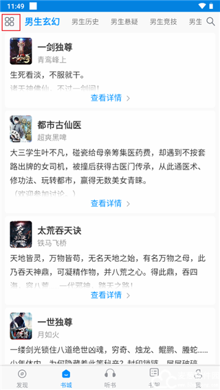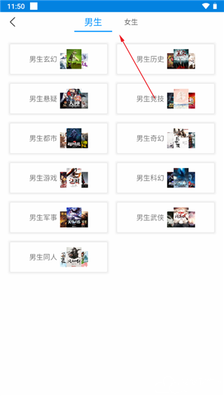 2、书城为用户提供了大量的小说资源,默认是男生爱读,可以点击界面左上角的图标进行切换