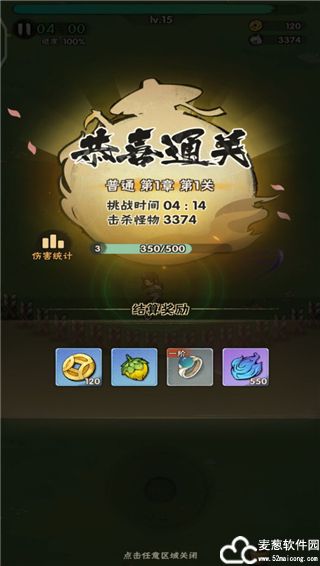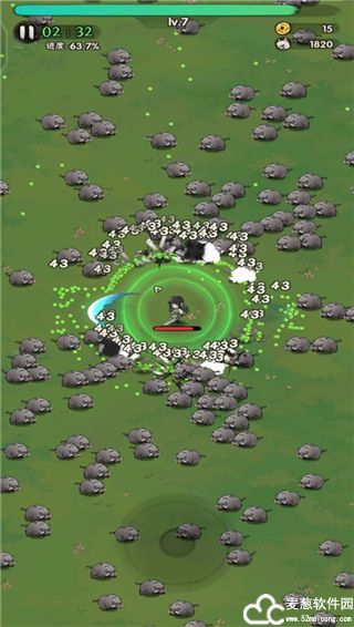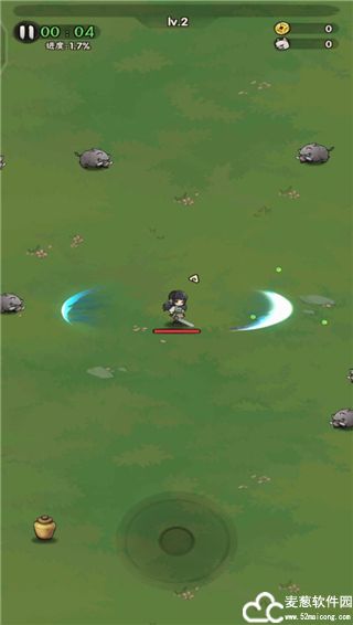 3、在界面的左上角能够看到关卡进度,当关卡进度达到了五十以上时,就会出现一大波怪物围攻玩家,将所有的小怪消灭完之后就会出现关卡BOSS,击败BOSS即可获得胜利