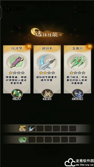 2、战斗中玩家字需要控制角色进行移动躲避攻击即可,角色会自动进行攻击,失去怪物掉落的绿色宝珠能够增加经验值,经验条满了之后能够升级,学习新的技能,同一技能能够进行多次升级,满级之后,技能效果大幅度提升