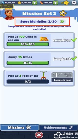 1、点击MISSIONS,玩家能够在这里看到任务等级,完成三个子任务能够提升分数倍率