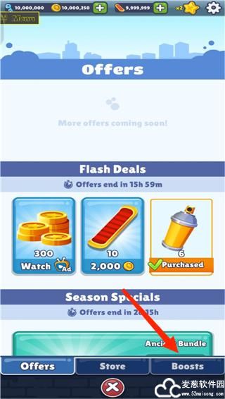 3、点击SHOP,点击Boots,通过购买得分加成之后在游戏中使用,能够在短时间内提升倍率
