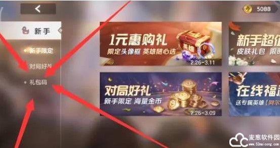 2、进入后在左侧点击礼包码界面。