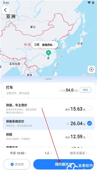 在顺风车app中,用户能够预约各种车型,在完成出行的同时节省了开销。