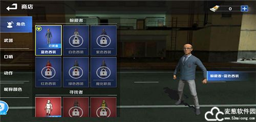 2、在界面右边中心位置的是商店,玩家能够在这里使用金币购买角色,武器,动作等。准备好之后点击开始游戏