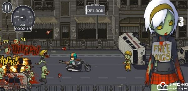 1、这是游戏界面,开始玩家驾驶一辆小车,快速飞驶,躲避僵尸的进攻;