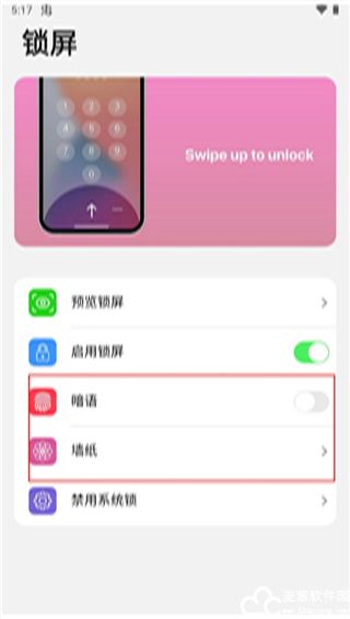 2、点击启用锁屏,会出现暗语和墙纸两个功能