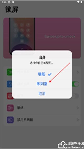 3、点击暗语能够设置锁屏密码,需要输入两次才能够成功设置,点击墙纸能够设置在锁屏时的背景,点击陈列室,里面有用户手机中所有的图片,选择好之后点击完成即可