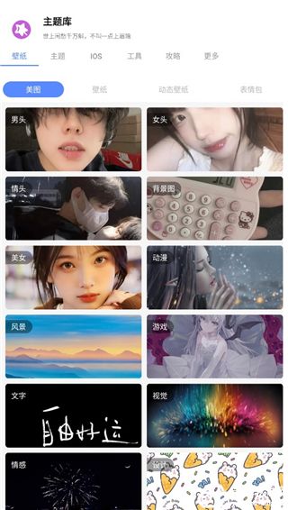 4、在壁纸界面中为用户带来了各种各样类型的壁纸,美女,动漫,风景,游戏等,资源丰富齐全
