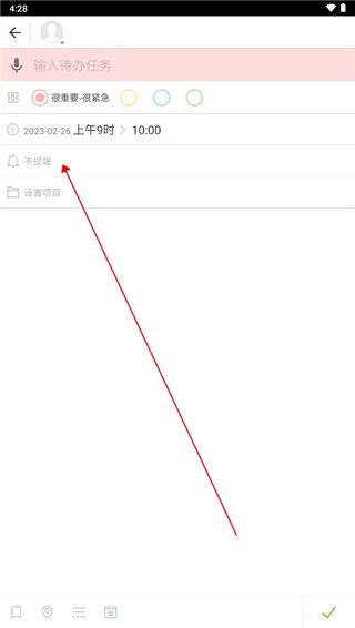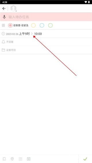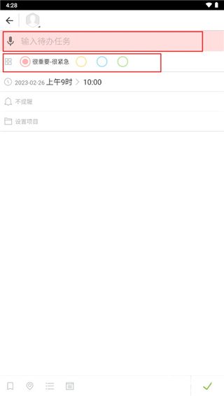 3、进入到设置代办任务界面,点击输入代办任务,选择事件的重要紧急程度