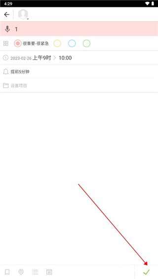 6、设置完成之后点击右下角的√即可设置完成,设置完成之后会在主界面根据事件的重要紧急程度划分显示