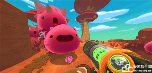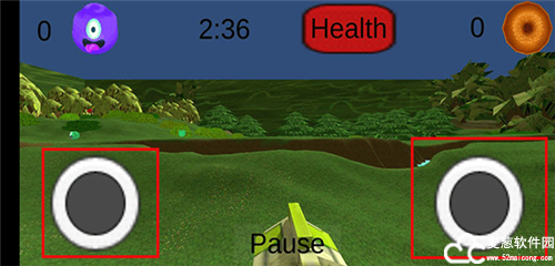 3、进入游戏后,左边的轮盘控制角色的方向,右边的轮盘控制角色前进,之后玩家可以通过吸尘器来收服史莱姆了。