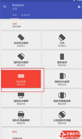 2、帮助用户强制转换屏幕显示方向,可以根据自己的需求进行设置;