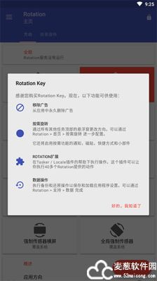 rotation强制横屏软件能很好的控制您的手机屏幕方向,不管是横屏还是竖屏都可以,功能强大,并且稳定,很好用哦。