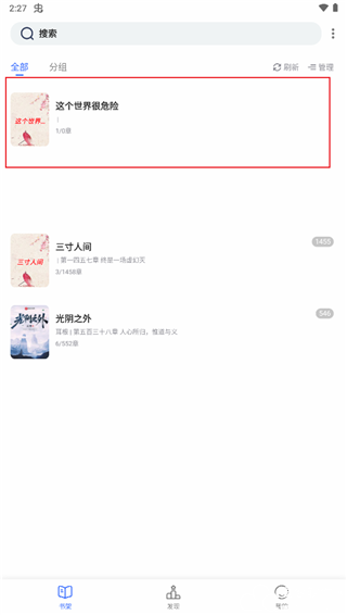 3、回到书架页面,就会发现小说已经成功导入了,点击即可开始观看