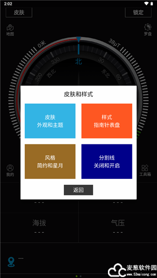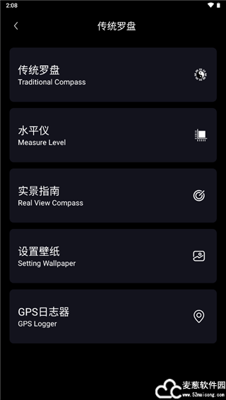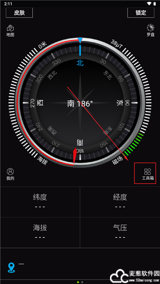 4、点击右上角的罗盘,这里为用户带来了传统的罗盘,水平仪,实景指南等功能