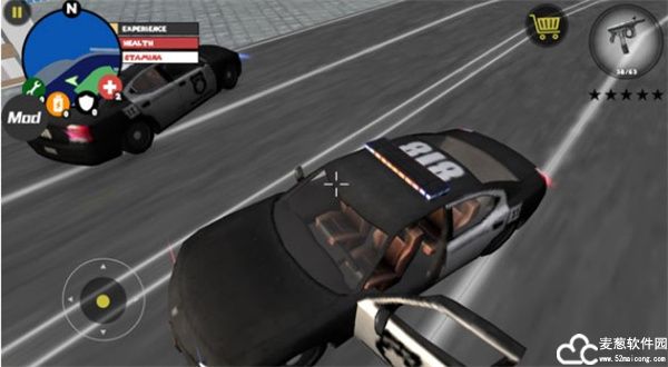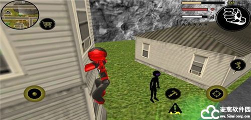 左侧移动、加速,右侧绳索,攻击(跳跃),跳跃,右上侧的武器更换以及血量、经验的显示都实时更新,一览无遗,凭借着大家自由的玩法,与其他帮派的人物进行交火,期间杀人能够获得经验,杀多了会产生星级,警察和其他附近角色会特殊照顾你对你展开火热的进攻,而如何存活,如何将其他人物击杀则是你所需要完成的任务。