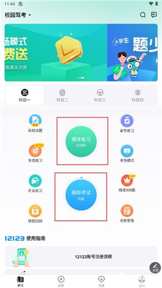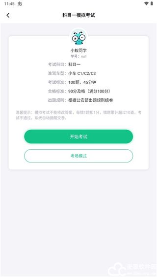 3、在校园驾考界面中,为用户提供了科目一到科目四的所有内容,如科目一的刷题练习和模拟考试,能够让用户在刷题的过程中了解并熟悉考试内容,并通过模拟考试让用户熟悉考试规则