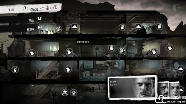 这是我的战争免费版是一款以战争为背景的冒险类游戏,说起战争,大家是不是想到将领、士兵为主角,这里都不是,而是一个艰难求生的平民,它是以真实事件改编的,让我们能更真实的了解到普通人在战争面前的场景,首先是食物问题,战争意味着秩序的崩坏,基本只有军队才有生活保障,所以躲避是没有的,为了生存,我们要外出探索,找到各种物资,除了食物外,还要有药品,毕竟医院医生是别想了,这里的设定是基本设施都是没有的,只有一些特定店铺是开启的,比如超市、被轰炸的学校,教堂等,这些建筑都有自己的剧情,其实就类似一个个关卡一样,一个地图就像一个章节,这是我的战争提供的地图也很多,可以看出玩法很丰富,剧情也很丰富,让您获得更好的体验哦。