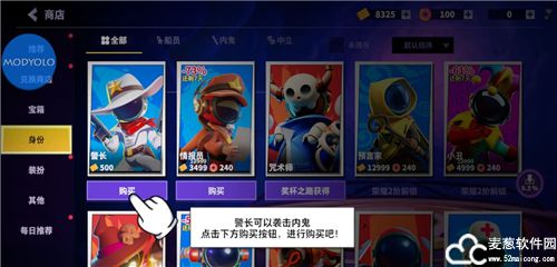 1、点击主界面右侧的商店,进入商店中选择想要购买的身份,点击购买