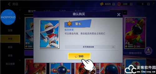 2、在确认购买页面中,会对身份进行介绍,如警长能够袭击内鬼,但是袭击船员会立即死亡,点击购买