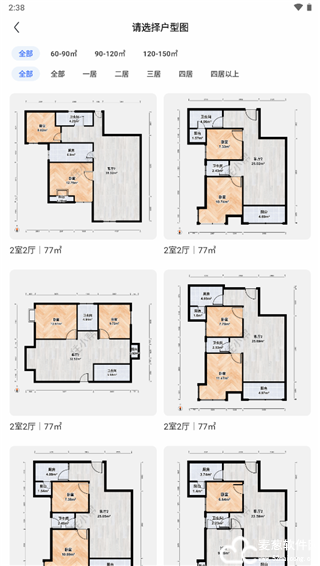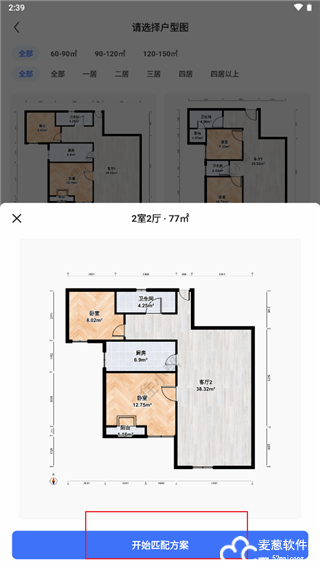 3、在选择户型界面中选择房屋的类型,随后点击开始匹配方案