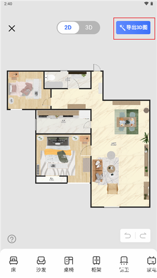 5、设计完成之后点击右上角的导出3D图,可以将房屋的设计图导出