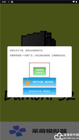 2、点击下载文件密钥文件,等待一小会儿,提示密钥已经下载完成之后点击安装密钥