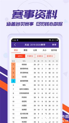 3、【比赛资料】涵盖全球大小联赛,提供联赛资料、积分榜、比赛历史数据,齐全