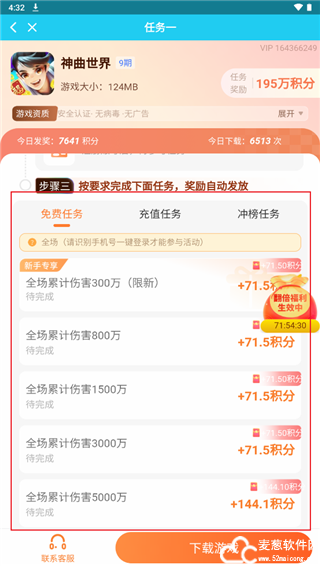 3、进入游戏之后,通过完成任务来获取积分,任务完成的越多,积分奖励也就越多