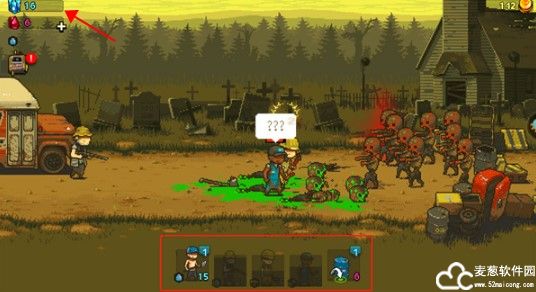 1、这是游戏界面,下方是派出士兵,每次派出都需要消耗资源,资源在左上角可以看到;