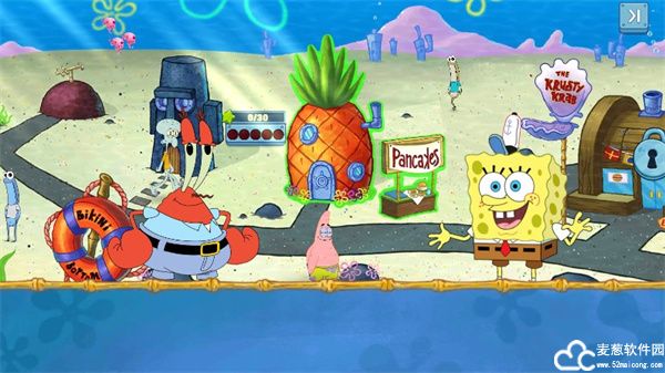 3、进入到游戏界面啦,很还原动漫场景,喜欢海绵宝宝的小伙伴一定会满意;