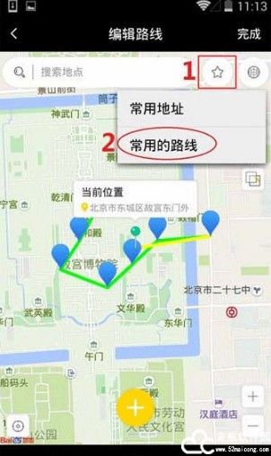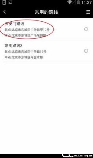 4、看,这里就能看到收藏的路线,点击右侧小圆球就能应用,很是方便快捷。