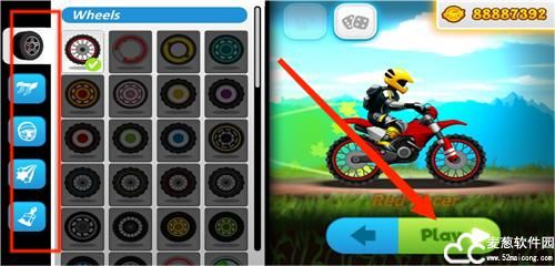 4、在赛车改装界面中,玩家需要改装自己的赛车,以此来达到赛车更平稳的行驶和更快的速度,改装完成之后点击play