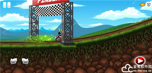6、游戏中操作按键只有三个,左边两个箭头分别代表着向后升和向前压,右边则是加速按键,当玩家到达终点时,代表闯关成功