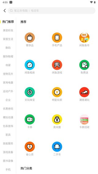 3、点击搜索栏旁边的分类,这里将所有的商品和功能全部分门别类了,用户能够根据自己的需要在这里寻找相关的物品。