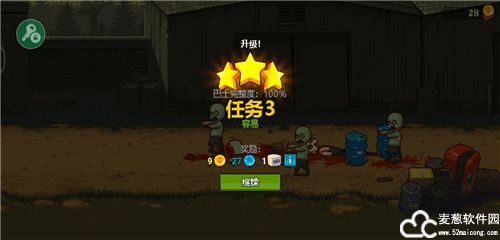 3、在闯关中,玩家不需要将所有的僵尸全部杀死,只需要将路障给破坏掉就可以通过关卡,同时巴士的完整度越高,玩家的评分越高,获取的奖励也就越多