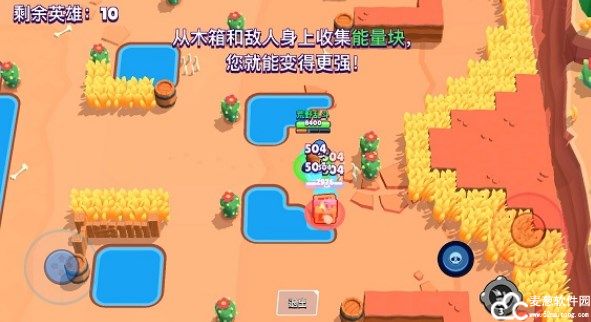 - 摧毁木箱或者击杀敌人获取能量块,可提升攻击力和生命值。