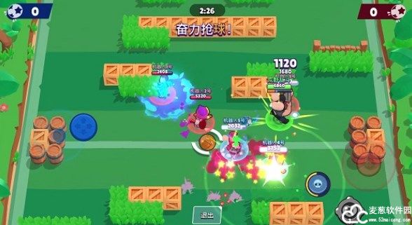 - 乱斗足球为3V3对战,未带球的球员可以对敌方发起攻击。