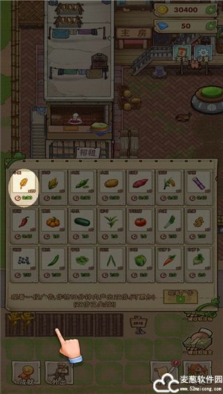 2、点击没有种植作物的土地,在弹出的探矿中选择一个想要种植的农作物,长按并将该农作物拖动至空置土地上,农作物就会自动种植