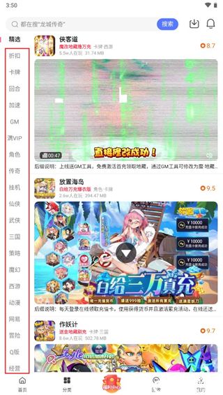 3、游戏齐全:传奇、挂机、仙侠、卡牌、奇迹等游戏;
