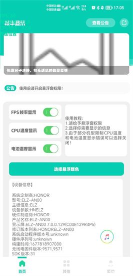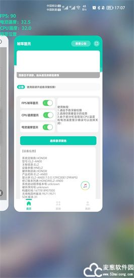 3、能够直接通过悬浮窗形式显示手机屏幕的帧率,以及CPU温度和硬件信息等等,可以显示显卡相关信息,包括显卡占用和显卡温度,数据非常准确。
