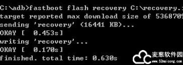 3、同时按住电源键和音量减小键,进入快速启动模式,刷入恢复文件,在打开的ADB终端输入快速启动闪存恢复回收文件中;