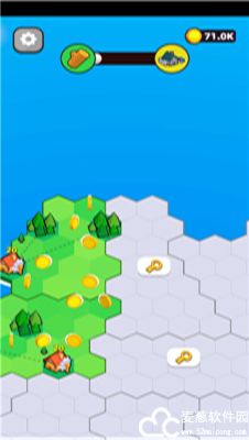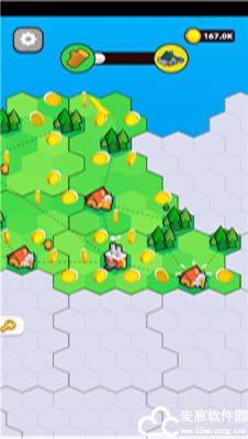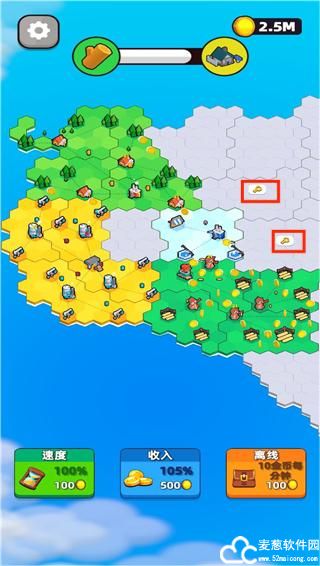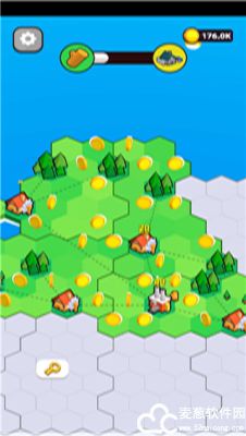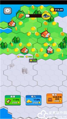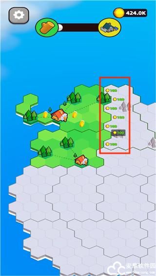 1、游戏的玩法非常简单,只需要不断的扩张土地即可,不过每一块土地都需要消耗金币,当玩家拥有足够的金币时,直接点击出现金币数量的土地即可升级