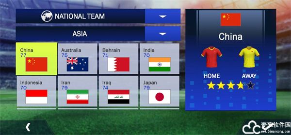 3、可以选择国家,会有队伍不同,喜欢哪个队就选哪个队;