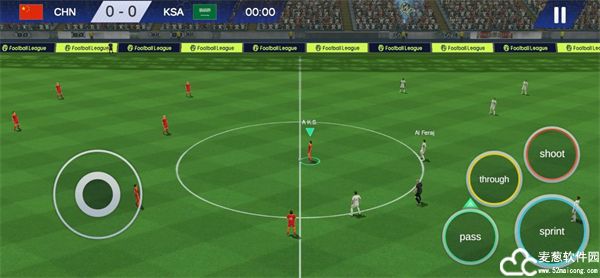 5、球场竞技界面,操作方式是遥感加按键的形式,操作简单,体验很好哦。