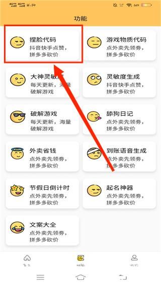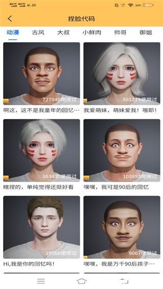 2、点击第一个捏脸代码,这里为用户带来了各种各样的脸型