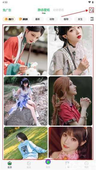 1、在软件首页中,为用户带来了大量的热门壁纸,并且还加入了搜索功能,让用户能够在资源库中更快的找到自己想要的壁纸主题