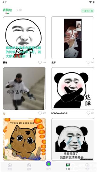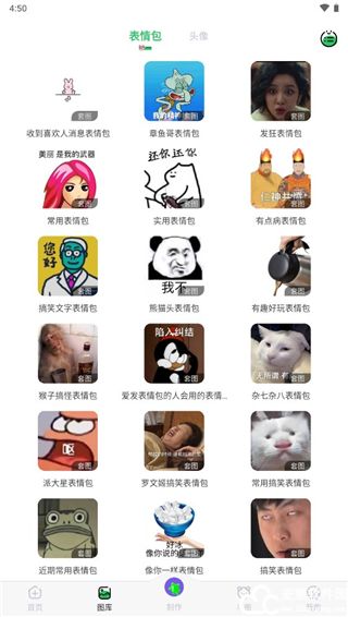 3、点击底部功能栏中的制作,这里为用户带来了两种功能,制作表情和GIF图,用户可以利用该功能自己设计各种图片或者是表情