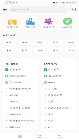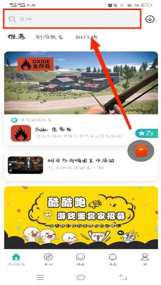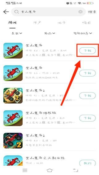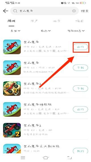 1、进入软件的主界面,点击上方的搜索栏,在搜索栏中输入自己想玩的游戏,小编以登山赛车为例