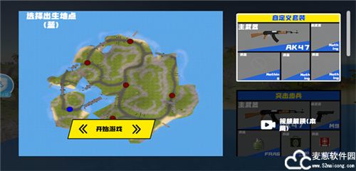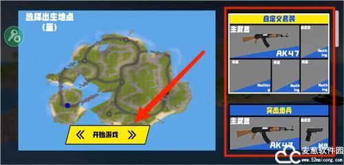 3、在选择出生点之前,点击右侧来选择武器装备,选择完之后点击开始游戏